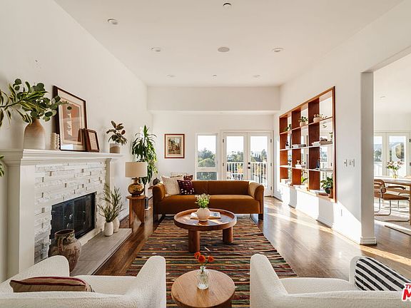 Ideally situated in the coveted Silver Lake hills, this thoughtfully designed and move-in ready home offers 4BR/4BA and sweeping west-facing views of the Hollywood Sign, Griffith Observatory, and city lights beyond. Bathed in natural light, the upper level features a bright and airy open-concept living space with a modern kitchen and charming breakfast nook, dining area, and expansive living room with custom cut-out bookshelf and fireplace. Large windows and an extended balcony capture stunning sunsets and panoramic views, while a private patio offers the perfect setting for entertaining or unwinding. Downstairs, a cozy family room/den and all four bedrooms offer comfort and flexibility. The spacious primary suite includes a large walk-in closet and a luxe ensuite bathroom with soaking tub, dual vanities, and separate shower. Three additional bedrooms and two more bathrooms complete the 2,396 sq ft layout- perfect for guests, a home office, or additional space as needed. Attached two-car garage is spacious with plenty of storage and room for projects. Unbeatable east side location just moments from all the best of Silver Lake, Echo Park and Los Feliz: the Reservoir, LAMILL Coffee, Botanica, L&E Oyster Bar and so much more are all right outside your door.