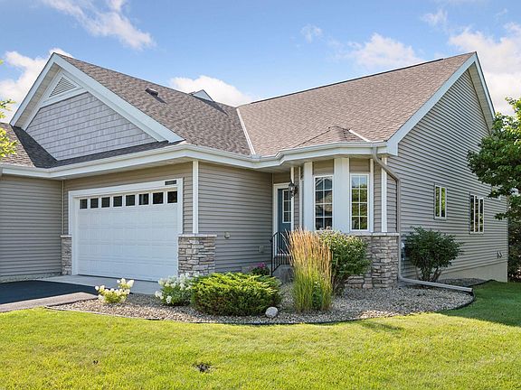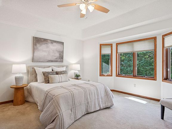 Main level living town home is one of Maple Grove's BEST! Beautiful-One Level Living on the best private lot, with Open floor plan & No yard work to do. A great location with easy access to Medicine Lake trails & Fish Lake. This home offers all you need for easy main floor living,, entry with bench, kitchen island, plenty of cabinets, dining area, fireplace, vaulted year-round sunroom with big tree views, laundry with sink & 1/2 bath for guests. You'll love the newly painted owner’s suite with space for a king size bed, double vanity, separate shower, tub and walk in closet. The lower level also has a large family room with fireplace, big 2nd bedroom and Office or exercise room plus a 3rd full bath. Storage space with less than 5 yrs Furnace and AC. This home is on a premium end lot with extra yard space for pets and guest parking. ADD a deck if you choose. 1 year home warranty included. One level living, sun filled end unit with big trees, no yard work, and a desired location in Maple Grove, by Bass Lake Rd/494. Neutral decor, perfect home to downsize to with 1 level living. Pride in ownership only 1 owner, beautiful home.