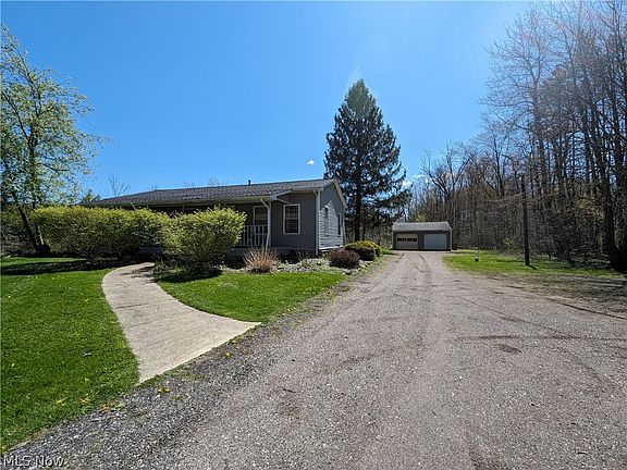 Welcome to one floor living on a 1.25 acre lot in a country setting! Enjoy relaxing on the covered front porch that leads to the generous sized foyer upon entry. This 3 bedroom 1 bath ranch offers newer floor coverings and sub flooring throughout. 10' high ceilings for a more open feel and extra storage space in some areas. An updated kitchen with easy access to the dining room or the hall to the rest of the house on the other end. The master bedroom has a walk-in closet. The 21x10 back family room overlooks the private back yard with easy access from it's slider door. UV water softner system. Easy side entry to the home that offers a deck. The outbuilding offers an abundance of space for the car/hobby enthusiast! It's split up to offer the two car garage space towards the front and 15'x24' more space attached to the back with it's own additional entrance/exit.