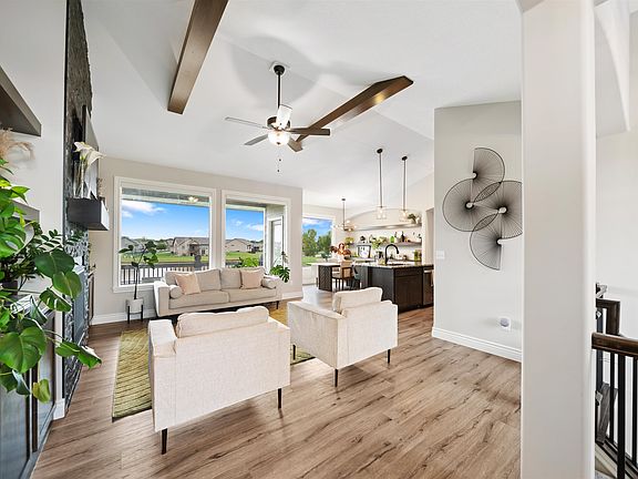 Welcome home to 15414 E Hazel Nut St, a stunning 5-bedroom, 3-bathroom home built in 2023. From the moment you arrive, you’ll be impressed with the curb appeal - beautiful landscaping capped off by the calming waterfall feature at the front entrance. Step inside to luxury with an open floor plan with built-in shelving, a living room highlighted by soaring windows, and a gorgeous fireplace as the centerpiece. The kitchen and dining combo is designed for both function and style, featuring granite countertops, an island, and plenty of space for gatherings. Just off the kitchen, a mudroom and laundry area with built-in shelving adds everyday convenience. The oversized primary suite is a true retreat with a large bathroom offering twin sinks, a walk-in shower, and a relaxing tub. Two additional bedrooms and another full bathroom complete the main level. Downstairs, the fully finished walkout basement expands your living space with a huge family room, an electric fireplace, a wet bar, two full bedrooms, and another full bathroom. Outside, enjoy a deck overlooking the fenced backyard with a serene pond view. As part of this neighborhood, you’ll also have access to the community pool — perfect for summer days. Don’t miss the opportunity to own this move-in-ready home with modern style and thoughtful details throughout. Schedule your showing today!