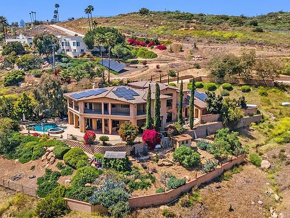 $200,000 price reduction!! Seller motivated! This exceptional estate has been further improved and refined by the current owners. Quality materials and thought have been considered throughout this 6 bedroom, 7 bath home and 4.29 acre property. Views over the entire San Diego valley extending to the ocean are available from the balcony. Complete privacy is offered and this quiet neighborhood offers peace and sanctuary. The finest of materials have been used in the construction and maintenance. Solid wood interior doors, wood frame windows, hand forged wrought iron, stone flooring and countertops, and a variety of other natural materials have been used. The warmth and charm exudes throughout. The property further offers an artist/potter studio, chicken coop, dog run, RV parking, a 3 car garage, and parking for up to an additional 8 vehicles. This is also a rarely available horse property, with stables and sprinkler treated riding ring to keep dust at bay. Every detail has been considered! A 54 panel solar with 3 Telsa powerwalls provide power for the entire estate. Commercial grade wifi and connectivity confirms constant connection when wanted. A whole house audio system has been wired and connected. The entry level master bedroom offers backyard access, has 2 walk-in closets, 2 water closets, vanity area, and double sinks. adjacent lot of 2.78 acres is also available for sale. This should be of consideration for privacy and/or opportunity. Inquire to the listing agent for details. No Mello Roos or HOA. Poway schools of Tierra Bonita Elementary, Twin Peaks Middle, and Poway High School serve this home. Additional photos coming soon.