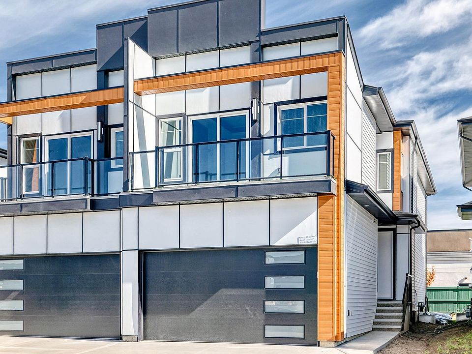 Nested in the highly sought community of Gorman is this well appointed, fully upgraded and custom built semi-detached home with legal basement suite. Step into the foyer where luxury vinyl plank leads to the open concept living area with OPEN-TO-ABOVE ceiling, flooded with natural light. The custom kitchen showcases QUARTZ counter tops, modern cabinetry with built in appliances and a SPICE KITCHEN. Upstairs, you will love the tranquil primary suite with a PRIVATE BALCONY, luxurious 5pc ensuite and a walk in closet. You’ll also find 2 generous size bedrooms, 4pc bath, a cozy bonus room and a convenient upstairs laundry. The finished basement offers a 2-bedroom legal suite, kitchen, full bath and living area perfect family use or rental income. Enjoy outdoor living on the completed deck, with quick access to Anthony Henday Drive, grocery stores, schools, and nearby amenities.