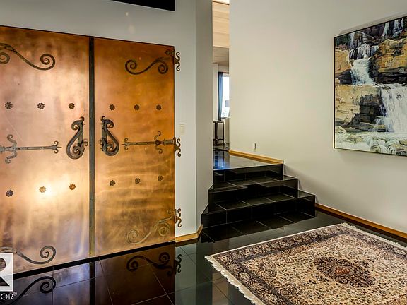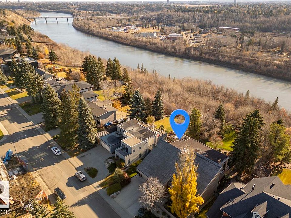 Discover an unparalleled opportunity to own in one of Edmonton’s most coveted river valley locations. This exceptional 6,581 sq.ft (total sq.ft) home rests on an expansive 11,990 sq.ft lot with panoramic views that rarely come to market. Every space captures the beauty of its surroundings, from the vaulted living room with wood-burning fireplace to the chef’s dream kitchen and elegant dining & family rooms. The main floor is designed for both comfort & entertaining, while the upper level showcases a luxurious primary suite with marble steam shower, walk-in closet, & serene river views. Four additional bedrooms, including one with a private balcony, offer room for family & guests. The WALKOUT basement features a spacious rec room with kitchenette, gorgeous wood-paneled office, and a 3pc bath with steam shower. Blending extensive upgrades with timeless craftsmanship, this rare offering invites you to live immersed in the beauty and tranquility of Edmonton’s river valley—where every day feels like a retreat.