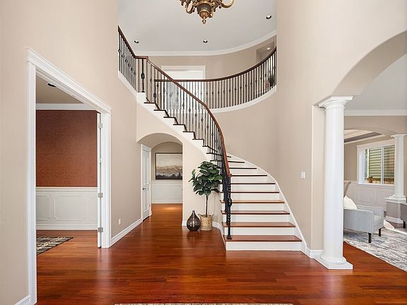 Step into this stunning Newcastle Reserve home that exudes luxury & craftsmanship at every turn, starting with 2-story entryway, sweeping staircases & gleaming Brazilian cherry floors. A rare main floor guest suite, perfect for multi-generational living. The open concept kitchen/dining/family room is delightfully cozy, but with 2-story picture windows & custom cabinetry is far from ordinary. Entertain effortlessly in the chef's kitchen, and large formal living and dining rooms, plus multiple decks and patio spaces. Huge primary suite with dual sided fireplace and classically designed bathroom.