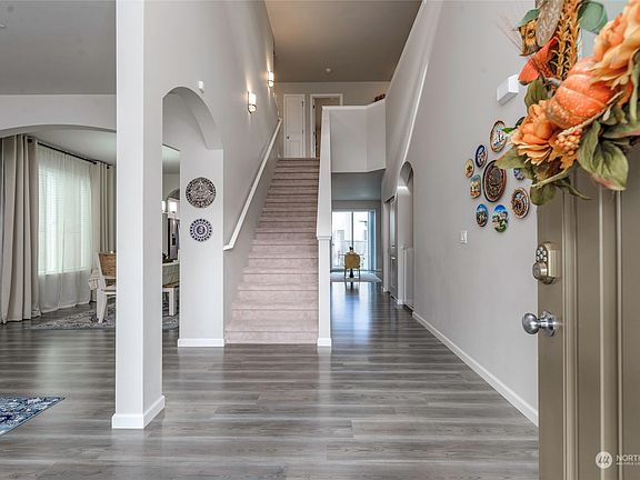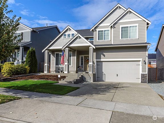 Finally, the cozy home in a quaint little town that you've been searching for! Walking in you'll be awed by a grand entryway w/ high ceilings & stairs wrapped in new, super comfy carpet that continues unto the 2nd floor. Make your way down the hall to the heart of your new home, an amazing white kitchen w/ a huge island awaits! Stunning quartz countertops, decorative backsplash, & SS appliances give this kitchen a modern touch! Cabinets & storage space galore + walk-in pantry! Open concept living rm & cozy fireplace for those cold WA nights, & A/C for those hot days too! Upstairs, 3 bdrms, bonus rm & huge primary suite w/ 5pc bath & walk-in closet. Large garage w/ tankless water heater. Less than 30 mins to JBLM/Olympia/Lacey. Welcome home!