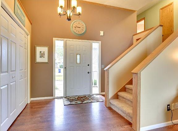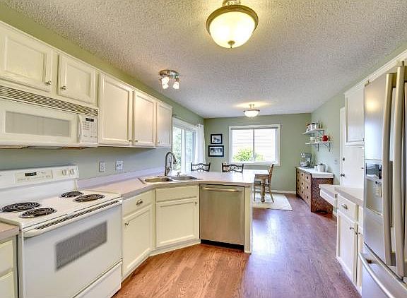 Ready for new owners. Large landscaped lot, fenced yard & maint. free deck. Desirable location, short walk to park, rink, fields & playground. Great Rm has 12 ft ceilings, lg windows & hdwd floors. Kitchen w/ bar seating.