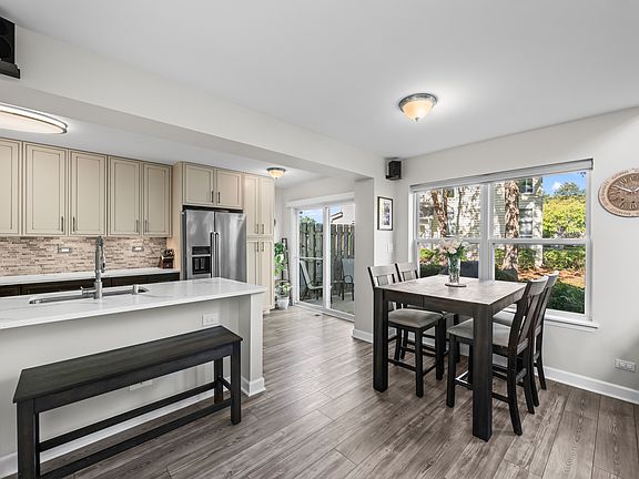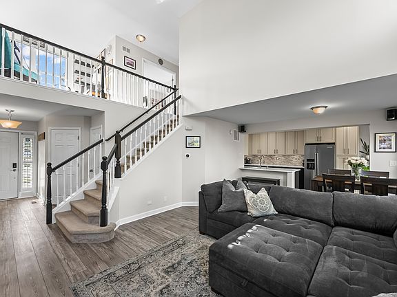 Welcome to 1542 East Baronet Lane, an exquisite townhome nestled in the serene Coventry Park enclave of Palatine. This elegant 1,500-square-foot residence offers a perfect blend of comfort, sophistication, and modern updates. Step inside to an open-concept floor plan with soaring 20-foot ceilings, abundant natural light streaming through double windows in the family room, and multiple skylights. The first floor and master bedroom feature vinyl wood plank flooring throughout, while the loft provides a versatile space perfect for a home office or easily converted into a third bedroom. The home offers two bedrooms, two and a half bathrooms, and numerous recent upgrades, including a kitchen, living room, and powder room renovated in 2023; master bath, upstairs bath, master bedroom, and guest bedroom renovated in 2024; new carpet and whole-house paint in 2024; front patio updated in 2023; and a laundry room with new washer and dryer in 2024. Additional updates include A/C replaced in 2022, water heater in 2024, and refrigerator, oven/stovetop, and dishwasher replaced in 2020. Smart-home features include eight automated blinds, plus a motorized shade over the sliding glass door, all customizable and able to be integrated through Google Home, Amazon Alexa, or Apple HomeKit, with remotes included, and the primary bedroom offers room-darkening top-down/bottom-up shades. Additional conveniences include a second-floor laundry room, an attached two-car garage, and under-cabinet lighting in the kitchen. Set in a private subdivision within a friendly, quiet community, this home is walking distance to the Metra station, close to major highways, and benefits from a well-maintained HOA. Experience the perfect combination of elegance, functionality, and modern living at 1542 East Baronet Lane-your new home awaits.