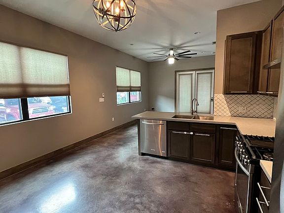 Welcome to the Gorgeous Condo minutes from The Pearl, located in the vibrant city of San Antonio, TX. This stunning 2-bedroom, 2-bathroom condo is nestled in a quaint small apartment community, offering a unique blend of comfort and sophistication. The condo features high ceilings, custom kitchen cabinets, and stained concrete floors, creating a modern yet cozy atmosphere. The kitchen is equipped with energy-efficient stainless steel appliances, including a gas stove and a refrigerator, and is adorned with a tile backsplash and quartz countertops. The condo also boasts a custom-designed walk-in closet and a walk-in shower, adding a touch of luxury to your everyday life. The primary restroom features a rain shower and a vessel sink, while the tub/shower enclosure is beautifully tiled. The condo is located on the first level and comes with additional storage room and custom window coverings. The community offers a pool, covered parking, and is conveniently located near shopping, downtown, and the UTSA Campus. The Pearl, a popular local attraction, is within walking distance. The condo is in a gated community, ensuring your safety and peace of mind. The price includes water, electric, and trash. Experience the best of San Antonio living in this beautiful condo.