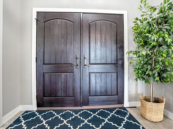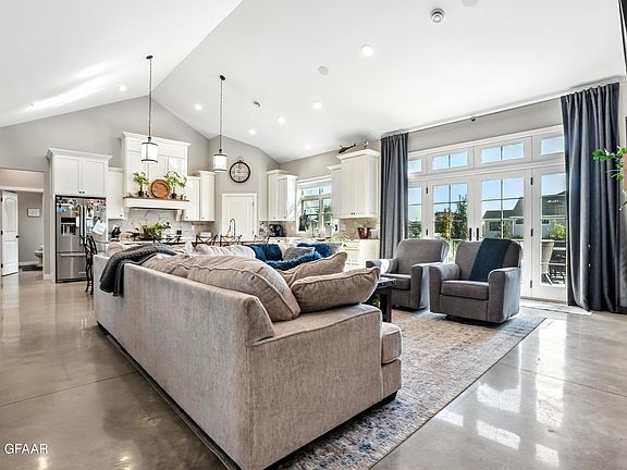 3 bed/3 bath/Office (could be 4th bed). Primary has large walk in closet, soak tub, large custom shower/steam. Custom cabinetry throughout. Huge kitchen island w/upgraded appliances. Vaulted Ceilings with floor to ceiling rock fireplace in living room. Polished concrete heated floors. Garage 1568 sq ft heated floors ad gas furnace, epoxy floors, finished walls and TV/hobby room. 16x24 shed, garden space behind. Fenced and landscaped/sprinklers.