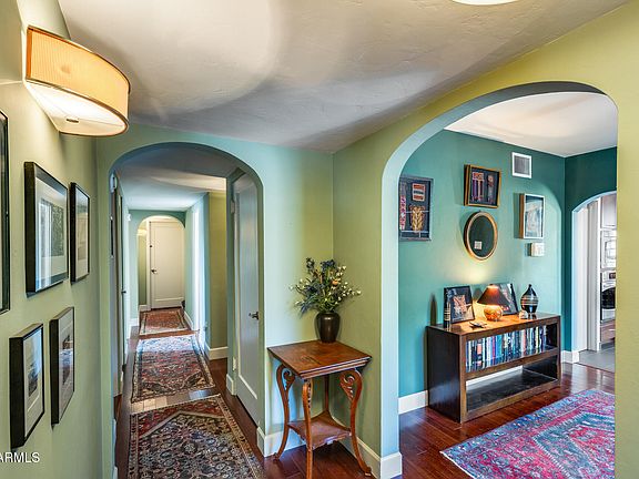 A Hidden Gem! Nestled in the small historic district of Margarita Place, this painted brick beauty offers timeless character, charm & modern upgrades without any loss to its antique allure. A tree covered front yard with enough patio space to entertain & a large back yard with trees, grass & raised beds as well as a workshop with a separate electrical panel & water for any hobbies or toys. Inside, there is a large, light-filled formal living room & an even bigger family room with the original knotty pine ceiling & French doors to the backyard. Off the family room is a laundry room & half bath. The kitchen features solid cherry cabinets, stainless steel appliances & vast amounts of counter space. From the kitchen there is a separate dining room through an arched doorway. The primary is huge with light from 2 sides, a full ensuite bathroom & large walk-in closet. All three other bedrooms have walk-in closets & one has its own ensuite with a shower/tub combo, while the other two bedrooms share a hall bath. Located in the middle of Mid-Town, between Encanto Park & Encanto Golf Course, enjoy the amenities of central Phoenix with all of its cultural venues & local dining.