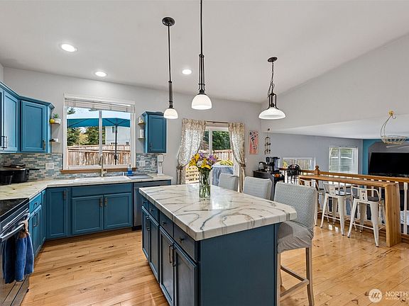Located at the end of a cul-de-sac, this spacious home with a 3-car garage offers a thoughtful & flexible layout. The main level features formal living & dining rooms, along with a large & open kitchen that includes a center island + a dining nook with access to the back deck. The lower level provides a large family room with a gas fireplace & slider to the patio, plus a fourth bedroom or optional den & a half bath. Upstairs, the primary suite includes a walk-in closet, dual sinks, and a soaking tub with tile surround. Two sizeable guest bedrooms & a full bathroom. Additional features include extra parking space—ideal for an RV—fully fenced backyard, and a chicken coop! Convenient to downtown Yelm, Lacey/Olympia, & JBLM!