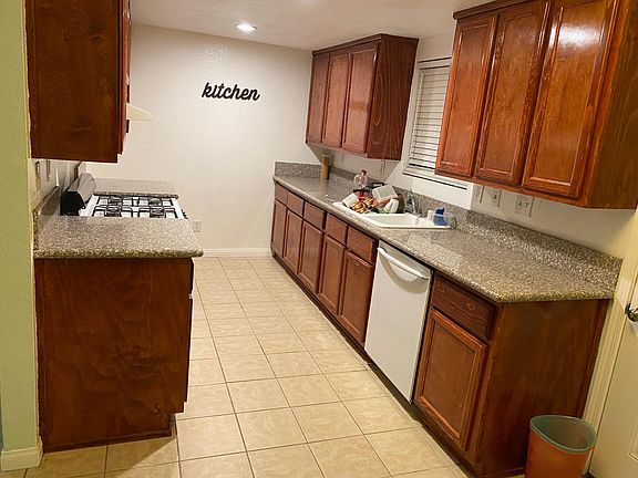 Newer paint Tile flooring New kitchen cabinets Granite counter tops Comes with stove and dish washer Huge Living Room Hookups for dryer and washer Near schools and freeways Quiet neighborhood Requires first rent and possibly two deposits depending on credit Water, and sewer.is included in the rent