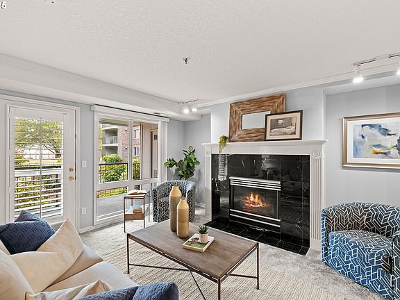 Warm gas fireplaceCovered deckSerene landscaped viewElegant updated kitchenGenerous counter spaceWalk-in showerPrimary suite