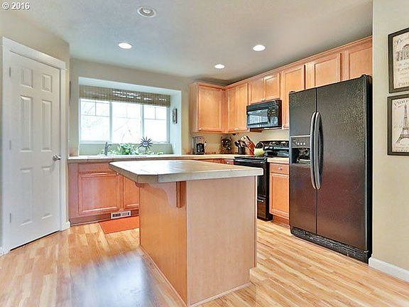 Light & bright end unit townhome in sought after Murrayhill. Laminate wood floors on main, open floor plan w gas fireplace, bay window, large kitchen w island, tile counters & pantry. Two master bedrooms w full baths & walk-in closets & additional bedroom on first floor! Deck off living room overlooking beautiful trees & walking trails. Oversized garage w storage galore! Close to transit, progress ridge & quick drive to Nike and Intel.