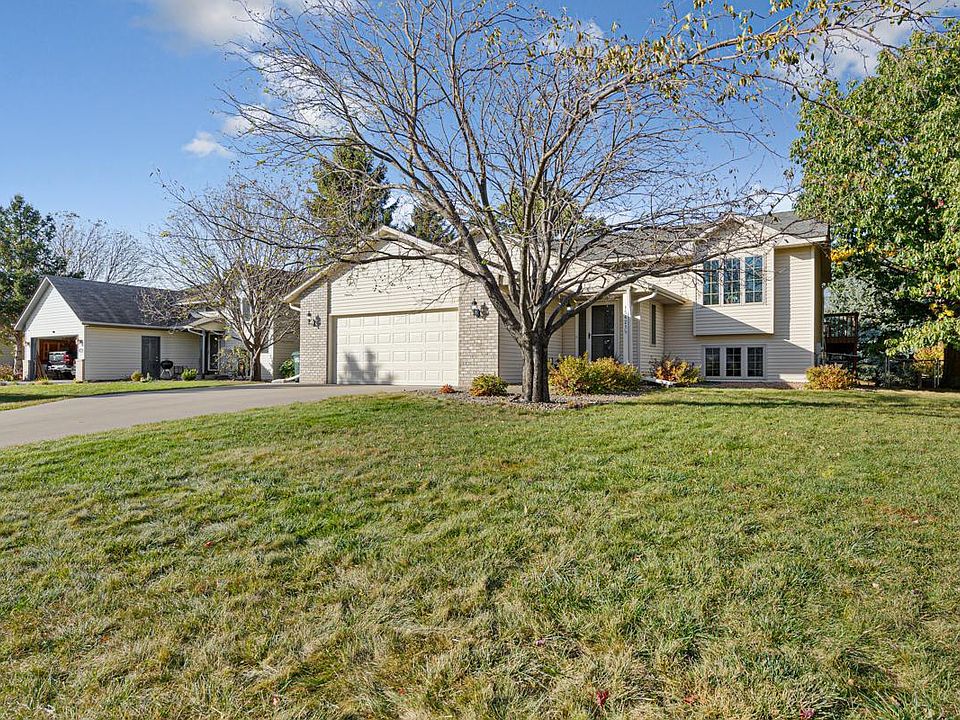 Welcome home to your 5 Bedroom, 3 Bath, split level home in central Rosemount. This home has custom accents like vaulted ceilings, real hardwood cabinetry, brick surround fireplace and wet bar! Three bedrooms on one level, lower level family room with look out windows. HUGE fenced in backyard with stamped concrete entertaining area and freshly stained deck. New furnace and water heater in 2023. Check out our 3D Matterport tour!