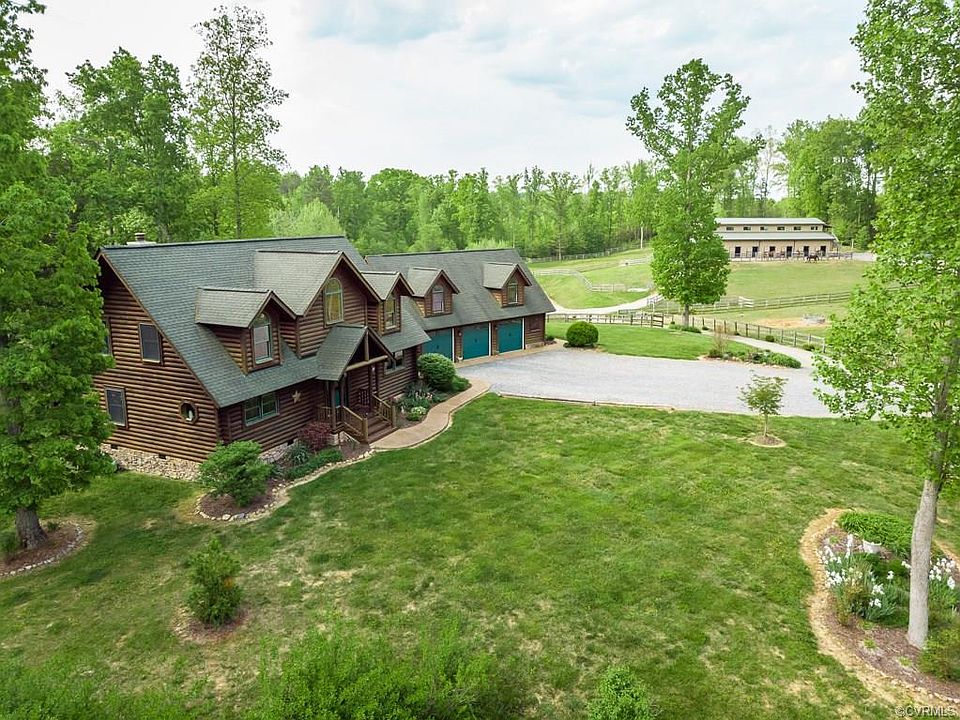 Welcome to Stillbrook Farm! Every inch of this CYPRESS LOG CABIN HOME is breath taking with it's fine tune to detail and incredible beauty! After work, relax by the STONE FIREPLACE or on the LOG PORCH over looking your horses. The OPEN GREAT ROOM, GORGEOUS INTERIOR LOGS, and HARDWOOD FLOORS throughout are most impressive. Your guests will enjoy their own private quarters in the CARRIAGE HOUSE over the 3 CAR GARAGE. The main house includes an ON DEMAND WATER HEATER, PROPANE COOKING & WHOLE HOUSE GENERATOR which also connects to the Carriage House. This 30 ACRE HORSE FARM, offers a 10 STALL BARN w/ TACK ROOM, OFFICE, MATTED STALLS, FEED ROOM, WASH STALL, & ON DEMAND WATER HEATER. It is also plumbed w/ installed fixtures for half bath and has an unfinished 2nd Floor. In addition there is a HAY & EQUIPMENT BARN, 8 RUN-OUTS, & 7 WOODEN FENCED PASTURES equipped w/ AUTOMATIC WATERING Systems. For your riding pleasure, find a LIGHTED ARENA w/ Additional FEED & TACK ROOM, 3 additional STALLS & PERMANENT ROUND PEN. This incredible property is also bordered by a creek and has been the site of several weddings & social parties. Take a look at the attached video!