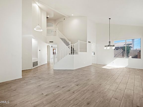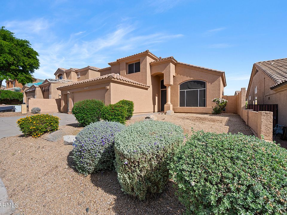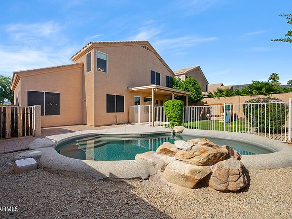 Location, Location, Location...Close to the 202 Loop, in the Breathtaking Backdrop of the Ahwatukee Foothills. Beautifully, recently remodeled home, appliances incld, new roof & water heater 2024, Newer HVAC Units. Chef-inspired kitchen features gleaming quartz countertops, crisp white cabinets, marble backsplash, stainless steel appliances (including fridge), & a spacious breakfast bar perfect for casual dining or entertaining. Natural light fills the home, creating a bright & inviting ambiance. The family room offers serene views of the lush backyard, w/ a sparkling Pebble Tec play pool, grassy play area & a combination of covered & open patio spaces, ideal for outdoor relaxation & gathering. Situated in the highly sought after & conveniently located Ahwatukee Foothills. Enjoy wood-look tile flooring in high-traffic areas & plush newer carpet in the bedrooms and on the stairway. The first floor includes a guest bedroom with an adjacent full bath, offering comfort and convenience for visitors.