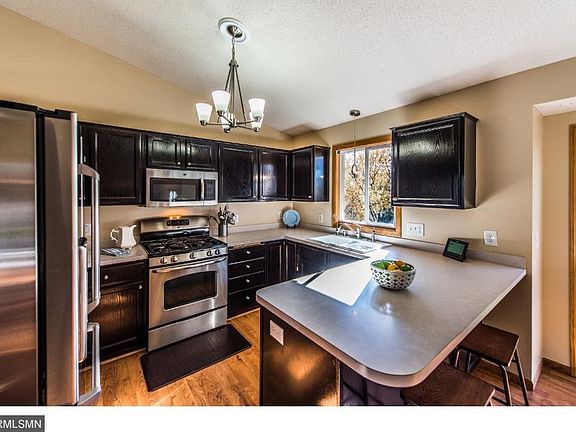 Meticulous home maintained to perfection! Updated baths, kitchen, siding, windows, etc! Large vaulted ceiling, tons of natural light, freshly painted! Walk-through master bath, open kitchen with stainless appliances; painted cabinetry and new lighting. 3 BRs up, plus a main floor Bedroom set-up perfectly for an office or guest room. Sliding doors from 2 levels creates great flow. Great fenced yard and located half a block away from Jaycee Park in award-winning ISD 196 schools.