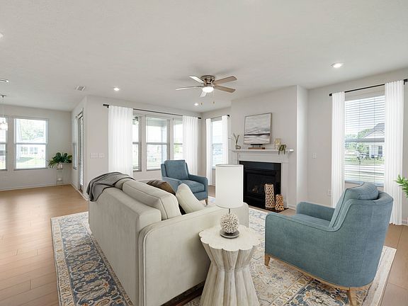 Discover the highly sought-after 55+ community of Kimblewick in Westfield, where this well maintained 2-bedroom, 2-bath home, built in 2022, offers the epitome of comfortable and convenient living. This popular Mystique floor plan boasts a unique tandem garage, providing exceptional flexibility for additional storage, a dedicated workshop, or extra parking for a vehicle or golf cart. Step inside and be greeted by the bright and airy ambiance created by light vinyl plank floors that extend throughout the home most of the home. Just inside the garage entry, find a convenient space perfect for a boot bench or drop zone, ideally situated just outside the laundry room, which includes a practical sink. The front of the home features a comfortable second bedroom and a full bath, perfect for guests. As you proceed down the hall, elegant French doors open to a versatile flex room, an ideal space for a second den, home office, or an additional sleeping area when needed. The heart of this home is its bright and spacious open layout, where the kitchen and gathering room flow together seamlessly, creating an inviting space for relaxation and entertaining. A designated dining area leads directly out to the covered porch, extending your living space outdoors. The Kitchen boasts sleek quartz countertops, stainless steel appliances, abundant cabinetry, and a convenient pantry. The gathering room is a cozy retreat, featuring a charming gas fireplace, perfect for unwinding on cooler evenings. The owner's suite offers a peaceful sanctuary, complete with a large walk-in closet and a private bathroom featuring a shower with a built-in bench and ample space for a vanity or additional storage. Kimblewick is more than just a neighborhood; it's a vibrant community designed for an active, social, and low-maintenance lifestyle. The impressive clubhouse is the hub for activities, offering both indoor and outdoor pools, a state-of-the-art fitness center, pickleball & tennis courts and more!