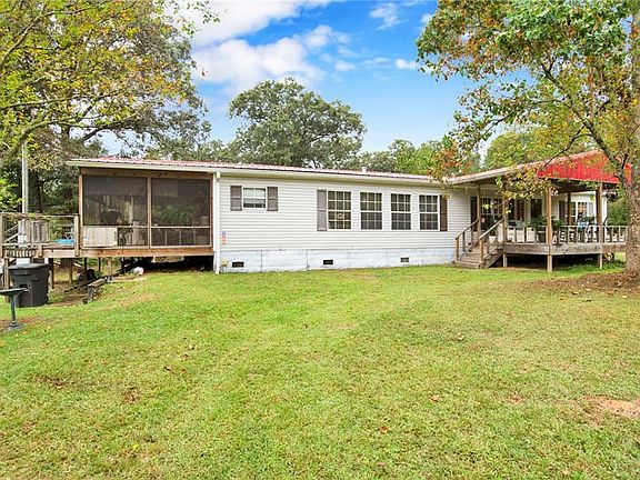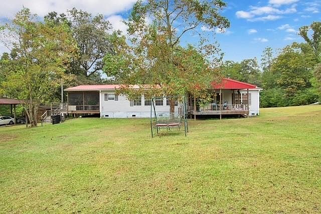 This 3-bedroom 2 bath double wide mobile home is situated on 9.3 acres and is 1680 square feet with 2 ponds. One pond sits on the left side of the property as you pull into the driveway and the other sits on the backside of the property. Enjoy fishing in either pond. The metal roof was installed around 2018 (per seller) . It has a propane tank in the back for the living room fireplace. The fenced in property has water spickets located throughout the property if you want to plant a garden or have livestock and a farm. This home also features a split bedroom plan with a centrally located kitchen with lots of windows looking out onto the front part of the property. Some updates include new paint, updated kitchen and some new flooring. There are 2 decks for outdoor entertaining. The side deck has an enclosed patio and a separate space for all your football parties. You will enjoy the privacy of this home because it sits way off the road. The expansive front porch over-looks the front acreage where you can sit and watch the guinea fowl, and their keets (babies) roam freely throughout the property. Make your appointment to see this home.