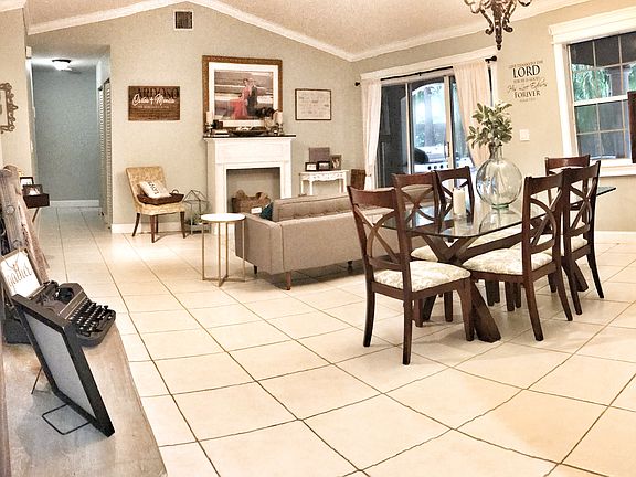 Well kept 3/2 home, MOVE IN READY! Nice quiet neighborhood, covered terrace, large backyard w/custom stamped concrete. Large driveway, up to 7 cars, 2/car garage. ROOM FOR POOL!! Crown molding throughout the home w/beautiful moldings on entrances and windows. Large rooms w/huge master bedroom and bath. S/steel appliances and wood cabinets in kitchen. Chuck Pezoldt Park within walking distance!