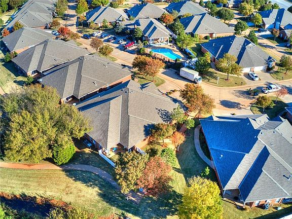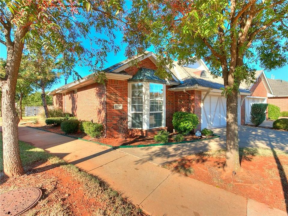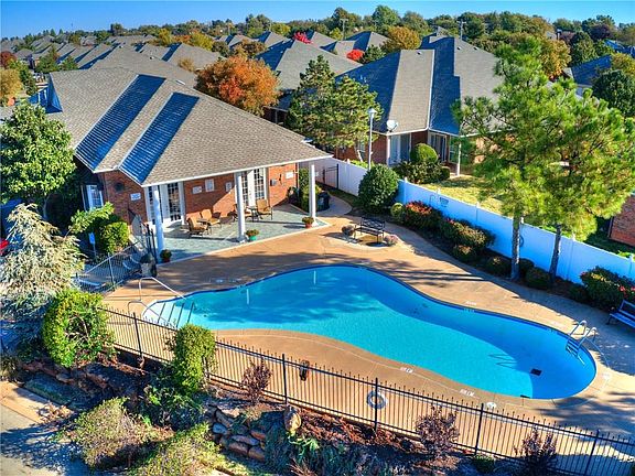 Very Spacious Condo with excellent floorpan, the 3rd bedroom makes an excellent study. The natural sunlight peeks through the bay window and sparkles down the hallway, then in the evening enjoy the sunset through the wooded green belt and noises from the stream and surrounding ponds. The home is in the beloved Edmond school district but has OKC utilities. The HOA covers all Lawn care, including the fenced in area with proper notification and is conveniently located near the Clubhouse and pool. The brand new wood floors, enlarged doorframes and handicapable showers and bath, make this home feel very large.The master suit is complemented with cathedral ceilings, french doors, a jetted tub, double vanities and a walk in closet. The home also has a Wonderful laundry room, with a sink and a closet and the kitchen has a built in desk, with a Wonderful center island. This home also makes an Incredible rental and can be rented for $1,675 a month.