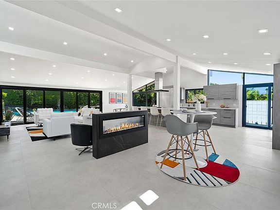Edward H. Fickett – the iconic name synonymous with mid-century modern architectural brilliance – is inscribed on the 1955 building application that paved the way for this residence. Strategically oriented for maximum indoor-outdoor enjoyment within a setting reminiscent of a resort on a nearly 16,000-square-foot, mostly flat, incredibly private, high above street level lot with towering trees, abundant outdoor space, and a newly replastered pool, this rare architectural masterpiece is located south of Ventura Blvd in Sherman Oaks, near Mulholland Drive and the Westside. Here, every mid-century modern element seamlessly integrates the outdoors with the indoors, creating a private home experience that captures the essence of California living. Reimagined with no expense spared, this residence has undergone a stunning transformation with quality & style that exceed modern standards. It features a single-story open floorplan with raised ceilings, skylights, floor-to-ceiling glass walls, large windows, a fireplace, an open-concept kitchen with a center island, a 4-panel living room slider that opens to the pool and the great outdoors, as well as a 2-car detached garage with large driveway that can accommodate multiple cars. Three generously-sized bedrooms offer wall-to-wall closets with built-in shelving, complemented by large sliding glass doors framing scenic pool and outdoor landscape views, while the primary bedroom offers the luxury of its own ensuite bathroom with dual sinks. The hallway bathroom exudes a serene ambiance, bathed in natural light from skylights, with a glass shower door and high-end, extra-large floor and wall tiles. Additional upgrades include Euro-style exterior & interior doors, recessed lighting, tiled and hardwood floors, a modern kitchen equipped with Miele high-end German appliances and Dekton countertops with waterfall finish, black-framed windows and doors, an electric fireplace, newer roof, HVAC, exterior & interior paint, as well as a replastered pool with new coping. Your search ends here, as you discover the perfect fusion of an unbeatable location, a prime generous lot, architectural style, rich history by renowned architect Fickett, and pristine, fully remodeled condition. This entertainer's paradise in a tranquil natural environment is more than a residence; it's a lifestyle waiting for you to claim. Make this iconic Fickett creation your legacy, your retreat, and your statement of luxury living – welcome home!
