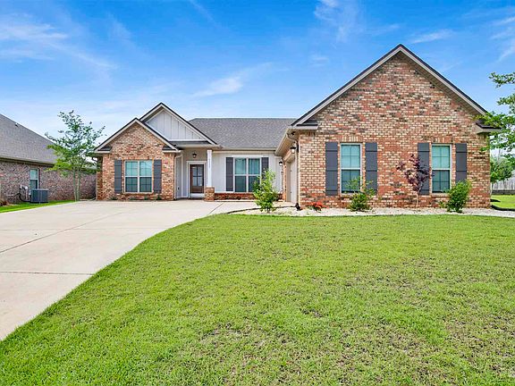 Craftsman-style all brick Home in beautiful Harmony Estates! Better than new, built 2019 by Truland, in this small quaint neighborhood lined with sidewalks for morning and evening strolls. This 4 bedroom, 3 bath, 2 car garage house has a split floor plan, with 2 bedrooms on each side, and large vaulted ceilings in the main living, kitchen and dining areas. Open the front door to the light & bright great room. The formal dining room for family dinners is on the right. The open floorpan includes kitchen overlooking the great room with a corner gas log fireplace for cozy evenings! A Chef's kitchen awaits, with an oversized island, stainless steel appliances, granite countertops, gas range, large pantry and eat-in breakfast nook. The back door opens to the covered patio and custom backyard sitting area to relax after your busy day and enjoy drinks under the covered patio or Pergola while watching the sunset. The Master Bath has two separate closets, two separate vanities, soaking tub, tiled shower and a water closet. Common area floors are the most family friendly, Luxury Vinyl Plank (LVP) flooring with carpet in the bedrooms. Other mentionable features: Privacy fenced Backyard, upgraded wood trim and large closets. Notice floorpan in the pictures and video on YouTube! Only a few minutes from Navy Federal Credit Union Operations HQ Campus, one of Pensacola's largest employers. Schedule your private tour today!