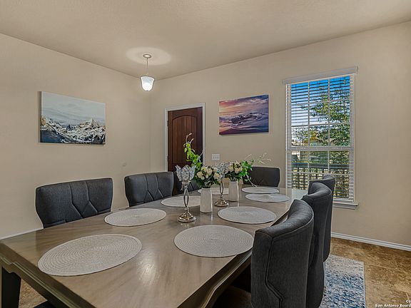 This stunning home features a spacious kitchen, with a large island, and a formal dining room. Upstairs includes a sizable loft. All rooms are located upstairs with an oversized master, and 3 wonderfully sized bedrooms. Located minutes away from Lackland and Base Dove creek shopping center, HEB Plus, Costco and many more!