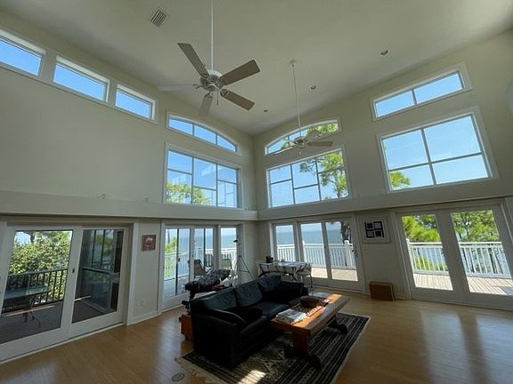 Architect Larry Burke designed house. Fabulous open design in top floor takes full advantage of the views from this bay front house.