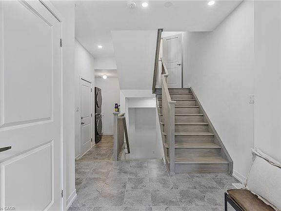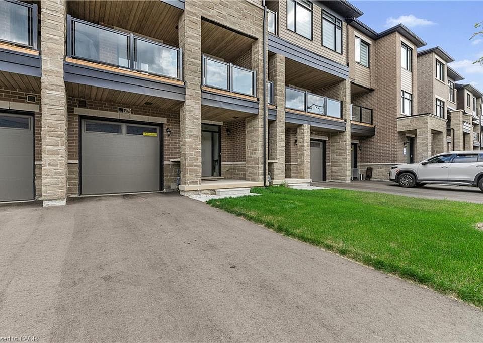 Welcome to modern living in this beautifully designed 3-bedroom, 2.5-bath freehold townhouse, perfect for first-time buyers and young professionals. This approx. 1500 sq ft unit offers a bright, open-concept layout with 9’ ceilings, large windows, and stylish modern finishes throughout. The second level is the heart of the home—featuring a sleek kitchen with stainless steel appliances, granite countertops, and a convenient breakfast bar, seamlessly flowing into a spacious living and dining area. Sliding doors lead to a large covered balcony, perfect for morning coffee, evening drinks, or using the BBQ. Upstairs, the primary suite offers a private retreat with a walk-in closet and a 3-piece ensuite, and private terrace. Two additional bedrooms are ideal for guests, a home office, or a growing family. The main level includes laundry, inside access to the single-car garage, and an unfinished basement that is perfect for storage. Situated in a quiet, friendly neighbourhood, you're just steps from parks, scenic trails, greenspace, top-rated schools, and everyday essentials. Plus, enjoy easy access to highways, transit, and shopping. With Tarion warranty coverage, this move-in-ready home checks every box.