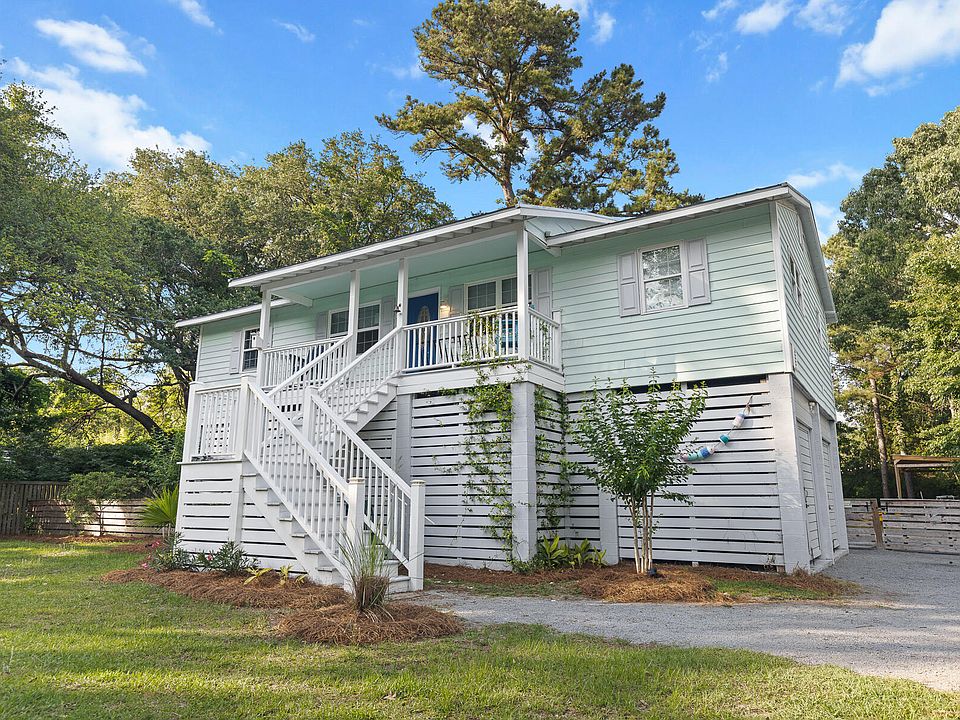 2 Homes on 1 Lot with a total of 1628 sq. ft. No HOA and access to community boat landing. Homes are connected by an elevated walkway overlooking the large lot, fire pit, chicken coop and Boat/RV gravel pad. 1543 Macoma is elevated with 1228 sq ft living space and 1228 sq ft of garage space. This 3 bedrooms, 2 bath home offers wood flooring in living area, a large primary and ensuite, 2 additional bedrooms, an updated kitchen, separate laundry, mud room, and a dinette that opens to the back porch. Step off the back porch and follow the elevated walkway connecting to 2nd property. 1541 Macoma offers full kitchen, dining & full bath upstairs. Downstairs is bonus space with a large bedroom and living area.Exit through the back door on the first level into a serene screened porch that takes you to the shared fire pit. On the back of the parcel is a tidal creek that runs into the harbor. The property has usage of a boat ramp and a kayak dock. This home is a rare gem right in Mount Pleasant.