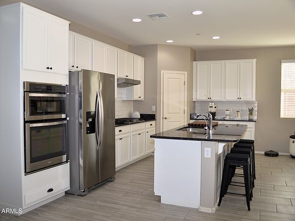 Beautifully upgraded single-story ENERGY STAR 3 bedrooms 2 baths home. Gourmet kitchen with gas cooktop, stainless steel appliances, subway tile backsplach, dishwasher, bult in micowave oven, upgraded 42' white kitchen cabinets. Granite countertops,stainless basin sink, large pantry. Dual vanity sinks and separate toilet room in master bathroom. Tankless water heater. Extended covered patio, garage door opener with keyless pad enity. Desertscape back yard. Community pool. Home is connected to fire sprinkler system.