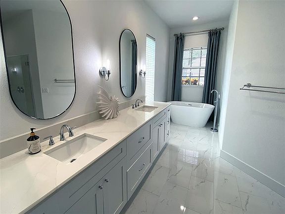 Welcome to 1543 Parilla Circle, a completely brand-new home experience in the highly desirable Marabella at Champions Club! This stunning 3-bedroom, 3-full-bath, residence spans 2,710 square feet, features a 3 car garage and has been meticulously remodeled from top to bottom. Enjoy the luxury of new porcelain tile flooring throughout, new trim work, and all new doors. The kitchen and bathrooms are completely transformed with new cabinetry, and every bathroom, down to the new toilets, have been fully remodeled. The master suite boasts a luxurious freestanding bathtub. Peace of mind comes standard with a whole-house Generac generator, a 2019 roof, and a saltwater pool. Plus, the home features new exterior paint, new LED lighting, a new air handler blower motor, and updated plumbing valves. This is modern, maintenance-free living at its finest!