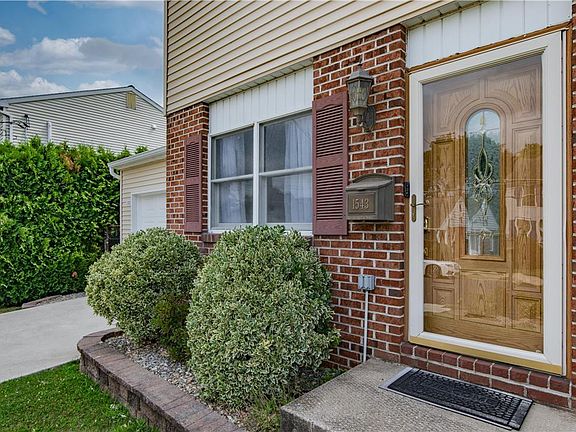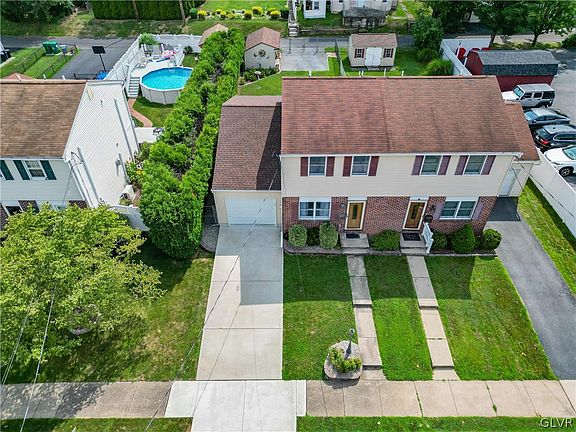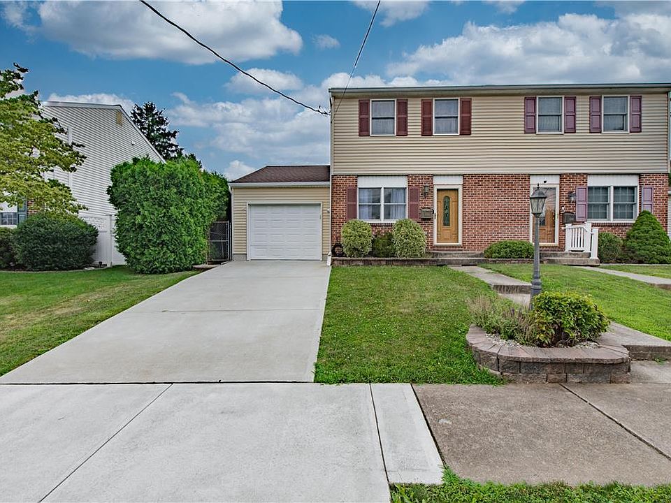 Offers are due 7/14 by 8pm. Welcome to 1543 Riegel Street ~ This tastefully updated, move-in ready, 3 Bedroom, 1.5 Bath Twin boasts a Tandem 2 Car Garage with pull down stairs to an abundance of loft storage, generous off street parking, covered patio, large garden shed & private fenced-in yard! Come & experience the small town feel, in this delightful historic community, in the borough of Hellertown, where you can enjoy diverse eateries, seasonal events, local farmers market & outdoor activities along the Saucon Rail Trail! This lovely, one-owner home is perfectly nestled on a wide, quiet street, in the Saucon Valley School District. The brick facade & pleasing curb appeal make a fantastic first impression. Inside, a fresh, neutral color palette & wood laminate floors provide a cohesive & open feel throughout the main level. The updated galley Kitchen features NEW stainless steel appliances & oak cabinetry. The adjoining Living & Dining Rooms make way to a peaceful covered patio, where you can enjoy outdoor dining, or relaxing after a long day, while overlooking the beautiful manicured yard & lush perennial gardens. A stylish half Bath completes the first floor. Three Bedrooms, ALL with NEW wall to wall carpeting & fresh paint, PLUS a luxurious remodeled main Bath round up the second floor. The lower level features a welcoming Family Room, pleasant Laundry accommodations & handy built-in wall shelves. Super convenient location, near to routes I-78, 33, 22 & 309!
