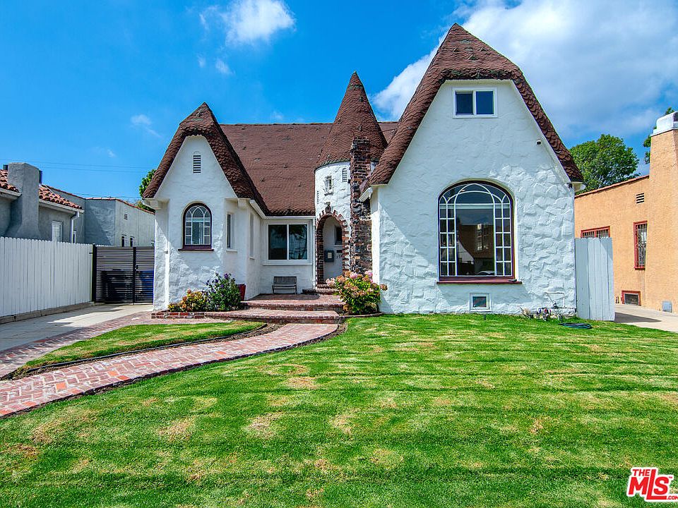 Charming, fully remodeled two-story California cottage in the heart of Pico-Robertson, offering 4 bedrooms, 3 bathrooms, and a versatile guest house. Step into a spacious great room, ideal for hosting, with seamless flow between living and dining areas. The adjacent family room, off the modern kitchen, doubles as a casual dining space. The updated kitchen boasts white arabesque tile, top-tier appliances including a built-in refrigerator, countertop range with hood, and double ovens and a built-in breakfast nook under a charming Victorian arched window with intricate mullions. The downstairs primary suite features dual vanities and a luxurious shower with river rock tile. A second downstairs bedroom connects to a guest bathroom with glass tile flooring. Upstairs, a landing with built-in bookshelves creates a cozy family retreat. One upstairs bedroom includes an attached playroom with charismatic angled ceilings, while another bedroom sits nearby. The upstairs full bathroom, with separate shower, tub, and dual vanity, offers ample space and style. Outside, a long gated driveway ensures privacy, complemented by a sprawling lawn perfect for outdoor activities. The converted garage studio, equipped with HVAC and a private bathroom, is ideal for guests or a home office. Recently renovated, this home is steps from Pico Boulevard, blending classic charm with modern upgrades in one of LA's most desirable neighborhoods.