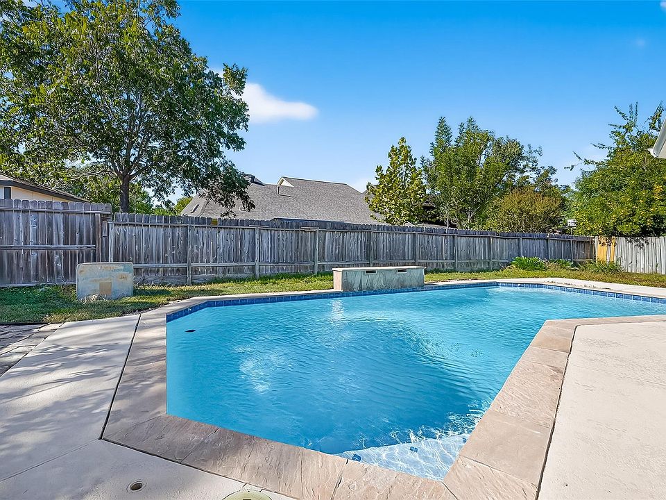 Sparkling swimming poolModern lightingNew light fixturesBackyard paradiseNew flooringStainless steel appliancesRoom for outdoor living