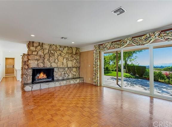 New listing! CUSTOM BUILT SINGLE LEVEL HOME! Classic mid-century w PANORAMIC JETLINER VIEWS on HUGE ALMOST 11,000 SQFT SWEEPING CORNER LOT. Coveted South of Blvd Sherman Oaks Hills location! Original owner, amazing property, never on market before, truly a happy sale, owner retired & is relocating. FANTASTIC CURB! Sleek Lines! Covered Double Door entry, custom hardscape includes BRICK DRIVEWAY w stacked stone accents, NEW PITCHED ROOF, attached oversized two car garage w direct access into home. Striking views from almost every room. Thoughtful floor plan, all rooms are generous size. Eat-in kitchen includes custom built-ins, 4 burner gas cooktop, KitchenAid DOUBLE OVEN, GE Dishwasher, tile counters, & includes refrigerator too. Sun-drenched FAMILY ROOM & LIVING ROOM each w large picture dual glaze windows/sliding doors & floor to ceiling STONE FIREPLACES. PARQUET HARDWOOD FLOORS, NEW HEATING & CENTRAL AIR, COPPER PLUMBING, security system. Master Bedroom w 3 closets, vanity area, double sinks. Other amenities include RECESSED LED LIGHTING, SMOOTH CEILINGS, PLANTATION SHUTTERS, WET BAR, MIRRORED SLIDING WARDROBE CLOSET DOORS, CROWN MOLDINGS. Spacious laundry room includes side by side washer & dryer. Large, covered patio w bricked lined accents surrounded by lush & beautiful grassy landscape. VIEWS! VIEWS! VIEWS! Well-kept original condition can enjoy as it is, renovate. Super easy access to Valley & Westside, popular shopping, dining, world class hotels, entertainment, top-rated schools including award winning ROSCOMARE ELEMENTRY School. Show cold