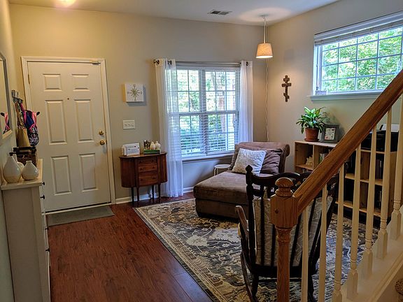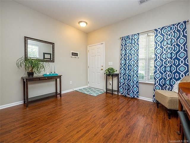 Located on one of the best lots in the neighborhood! Private patio overlooking a large green space and trees. Inside you will be impressed by the distressed hardwood flooring and beautiful Kitchen. Plus the unseen like a tank less water heater! Open flowing spaces will keep you engaged in all that is happening. Luxury MasterBed with walk-in closet. Large Secondary. Great schools close to Harris Teeter in the unbeatable Ballantyne location!