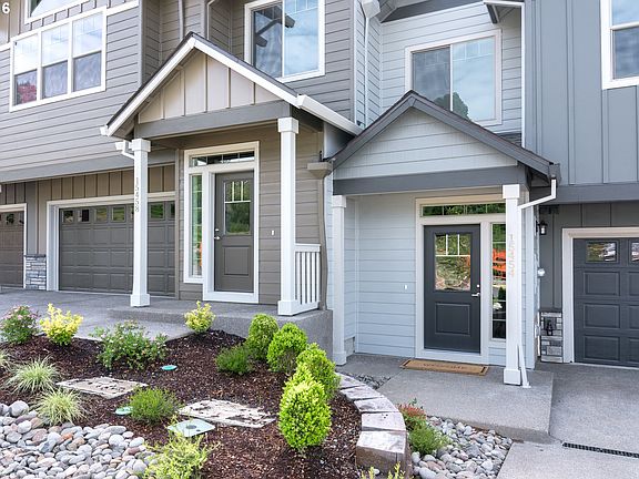 A wonderful townhome with open concept. Great kitchen with granite countertops large island and backsplash. Laminate floors and hi ceilings on the main and vaulted ceilings upstairs. Forced air heating and air conditioning. Private deck over looks park. builtin BBQ. One car oversize garage. HOA includes gym, party room, pool and commons.