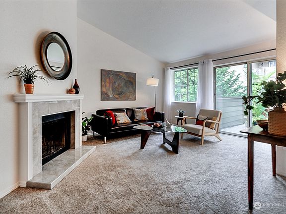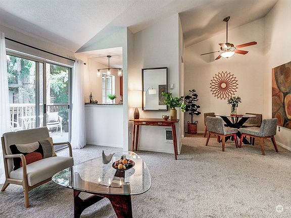 Light, bright and beautifully updated condo in sought-after Mill Creek neighborhood! Top floor living just steps away from Mill Creek Country Club, Tennis Club, Swim Club and scenic walking trails. Step into a spacious living room with vaulted ceilings & fireplace that opens to a beautiful balcony. A breakfast bar from the living room opens to a lovely kitchen with updated appliances & granite countertops. Relax in a large bedroom flooded with natural light & a walk-in closet. New carpet & paint throughout with in-unit washer & dryer. Well-run HOA + NO RENTAL CAP. Plenty of storage. Beautiful grounds & incredible amenities including outdoor pools, exercise room, athletic court, sauna & more. Minutes to Mill Creek Town Center!