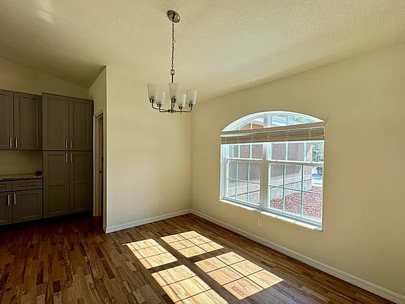 Flooring all wood laminate throughout, beautiful kitchen with gray cabinets and lots of them, huge yard. The yard is not fenced. Pets on case by case basis. This home is less than 2 years old.