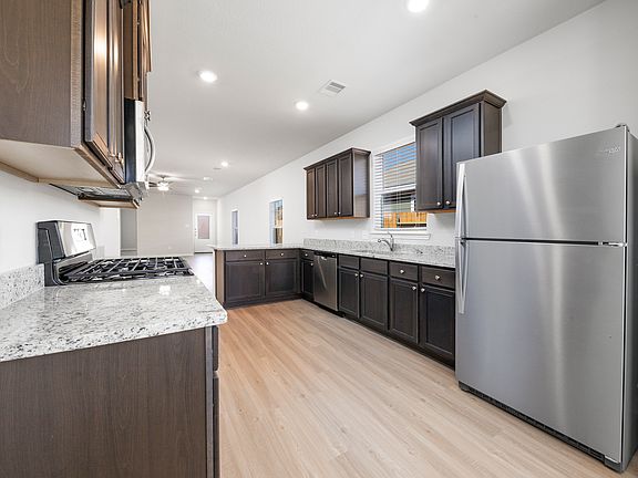 NEW CONSTRUCTION! Front yard landscape services of mow, edge, and seasonal bed maintenance included in rent. All appliances included. If you are looking for style and comfort, look no further than the Lily by LGI Living. The 4-bedroom, 2-bathroom Lily boasts a thoughtfully designed, spacious interior perfectly suited for families of all sizes. With an open-concept layout and spacious entertaining areas, this home was designed to impress. The Lily showcases a stunning kitchen filled with stainless-steel Whirlpool appliances, polished granite countertops, recessed lighting, and a large single basin sink that will fit all of your pots and pans. A huge living room and dining room provide entertaining space for your friends and family to enjoy a game night, watch party or family dinner. Take the party outside and enjoy a fully fenced, private back yard.
