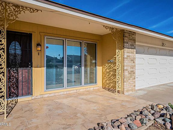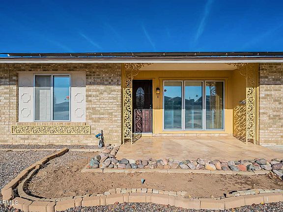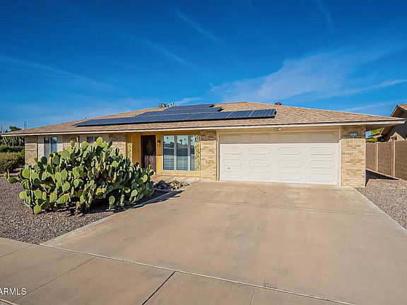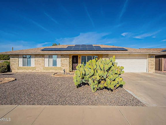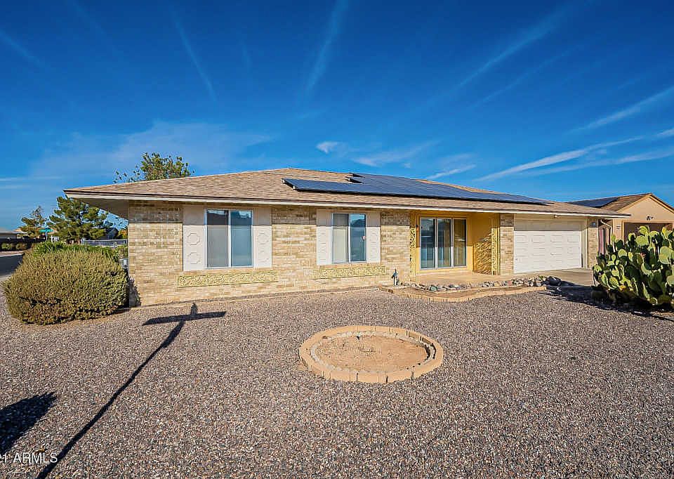 ''Elegantly updated Fontaine model, 3 beds, 2 baths, new granite countertops, new tile flooring, full extension on the back (not an enclosure), with a beautiful and spacious and open floor plan. Enjoy the benefit of low to no electrical bill due to the Solar panels. Newly installed A/C unit, 2020. New roof, 2018. Best of all? A detached, yes, detached, air-conditioned, 720 square foot man-cave, camper, toy hauler, smaller RV space (has gate), or 4-car hot-rod garage! There are only a few of these that even exist in Sun City (has permits)! Bring your highest and best - this will not last long!''