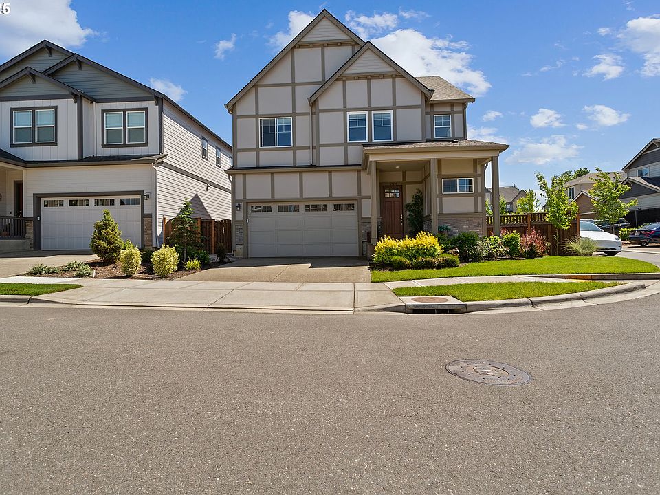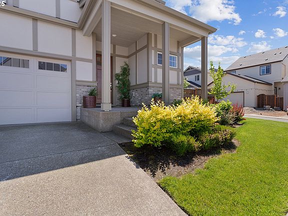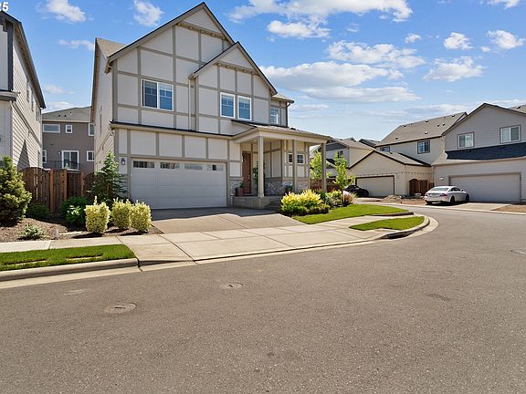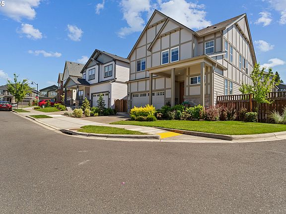 Welcome to this light and bright 4 bedroom/2.5 bathroom home on a 5,000sqft corner lot. This North-facing home features model home upgrades, high ceilings, and plenty of windows throughout the home providing ample natural light. Open concept living on main level with a cozy fireplace and entertainers' kitchen featuring stainless steel appliances, granite countertops and island. Relax in the primary suite, which features a luxurious en-suite with a soaking tub, walk-in shower, and double vanity. Large, fully-fenced backyard is perfect for outdoor relaxation and entertaining. Back and side yards completed with pavers - $25k worth of upgrades! Minutes from Sato Elementary and an easy commute to Nike, Intel, Bethany Village and Tanasbourne. All appliances included.