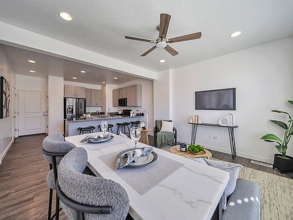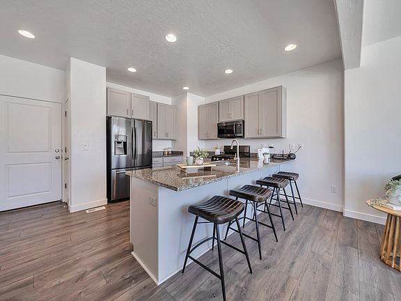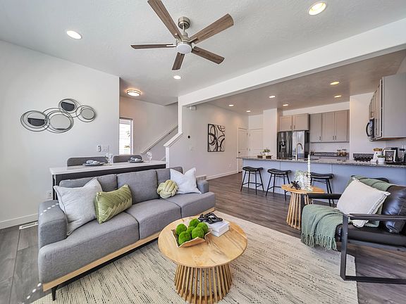 This beautiful townhome end unit is move-in ready and offers 3 bedrooms and 2 baths. The main floor features an open concept living area with lots of natural light. The kitchen is nicely appointed with light grey shaker cabinets, granite countertops, and black stainless appliances. The well thought-out design provides ample storage with large walk-in closets in each bedroom. You can enjoy the community swimming pool just across the street along with picnic and playground areas. You don't want to miss this spotless home with quick and easy access to I-15, Redwood Road and Mountain View Corridor.