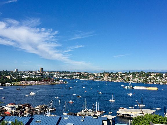 Available just in time for 4th of July Lake Union Fireworks! 2 bedroom 1 bath with expansive views! Top floor with wonderful cedar planked ceilings. Huge windows, bright light. View of gasworks park, lake Union and the beautiful cascade mountains. Watch the sailboats and sea plans from your own home. Call Kelly at 206-853-5174. NON SMOKING BUILDING. *pictures shown may not be exact unit. 12 month