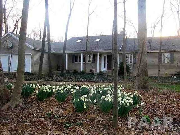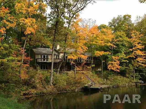 One of a kind, custom built ranch on 34 acres offers wonderful hunting & fishing w/ private, stocked 2 acre 40ft deep lake! Beautiful property w/ great views & walking trails borders Mackinaw river & State fish & wildlife area. Deck across entire back of home makes a great place to relax & take it all in! Open floor plan w/ over 3,700 fin sq ft. Granite countertops & new stainless appliances. New tile bath. New roof in '11. Great workshop area or man cave in walk out LL. 15x45 Pole barn w/ concrete floor. 11x7 Mudroom. 7 tillable acres, 17 timber. 2 miles from winery, 5 miles from Golf Course!