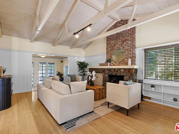 Located in the heart of Sherman Oaks, this inviting traditional residence embodies the best of Southern California living. Set on a beautifully landscaped, flat lot of over 9,000 square feet south of Ventura Boulevard, the home blends classic character with modern comfort in an entertainer's ideal setting. Step inside to a warm and elegant living room featuring wood-beamed ceilings, rich hardwood floors, and an oversized fireplace anchoring the space. The open layout flows seamlessly into a formal dining room and a bright, cheerful den with direct access to the resort-style backyard. The remodeled kitchen offers custom cabinetry, stainless steel appliances, and convenient access to outdoor entertaining areas. Upstairs, two spacious bedrooms include a primary with a private balcony overlooking the lush grounds and pool. Both rooms are filled with natural light and feature generous closet space. A large bathroom includes both a soaking tub and separate shower, with potential for reconfiguration to suit your style. A third bedroom on the main level, complete with its own full bathroom, provides flexibility for guests, a home office, or a fitness room. The expansive backyard is a private oasis, surrounded by mature landscaping, vibrant rose bushes, and towering hedges. A pool, pool house/cabana, and multiple seating areas create an ideal environment for relaxing or entertaining year-round. Additional highlights include a two-car attached garage with direct entry, HVAC, copper plumbing, an energy-efficient "cool" roof, and upgraded pool equipment. Located within the desirable Lanai Road Elementary and Hesby Oaks Charter school districts and just moments from Ventura Boulevard's boutiques and restaurants, this home perfectly captures the essence of relaxed, refined Sherman Oaks living just minutes from the city.