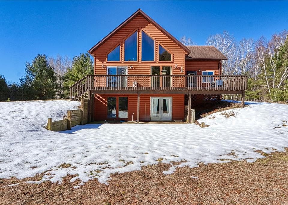 This spacious chalet-style home features log siding and an open concept floor plan. The main level boasts a living/dining/kitchen area with a cathedral ceiling and large windows, flooding the space with natural light. Pine finishes adorn the interior on both the main level and in the loft. A generously sized 4-season room with windows on three sides offers a serene spot to unwind. Downstairs, a sizable rec room provides ample entertainment space, measuring 24' x 23'. With two bedrooms on the main level, one on the lower level, and a flexible loft bedroom, there's plenty of accommodation options. Completing the property is an oversized 2-car detached garage for all your storage needs.